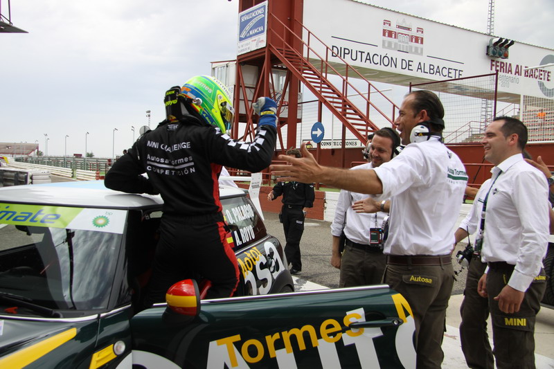 Oscar Palacio (piloto) "Alex me entrego el coche en perfecto estado y en una posición de carrera inmejorable. Tras de mi llevaba a un experimentado Jorge Baeza que hizo que me entregara a fondo hasta final de carrera. En esta mi primera temporada en circuitos y con un coche totalmente diferente a los pilotados hasta ahora estoy muy contento por la rápida adaptación que estoy teniendo y el ritmo constante de carrera que mantengo dejando atrás los altibajos en tiempos por vuelta que padecía hasta la fecha. Ya en Albacete sentía estar entre los más rápidos y aquí por fin lo he podido demostrar con un tercer puesto que con mi granito de arena he logrado para Autosa-Tormes Competicion. Siento que estoy en el mejor equipo de la MINI CHALLENGE con un compañero rapidísimo y este resultado me motiva enormemente para la última carrera de la temporada. Pregunta ¿Tras haber conseguido ser nuevamente campeón de Asturias de montaña que opinión te merece la competición en circuitos? Repuesta, en circuitos estas mucho tiempo pilotando el coche y la sensación de ir con más competidores en pista a la vez es muy complicado y te obliga a estar no solo atento a tu trazada sino también a lo que hacen los demás. Disciplina muy distinta a la montaña que es de corta duración y el pilotaje has de hacerlo siempre al cien por cien. Se asemeja mucho a la vuelta de calificación en la MINI."