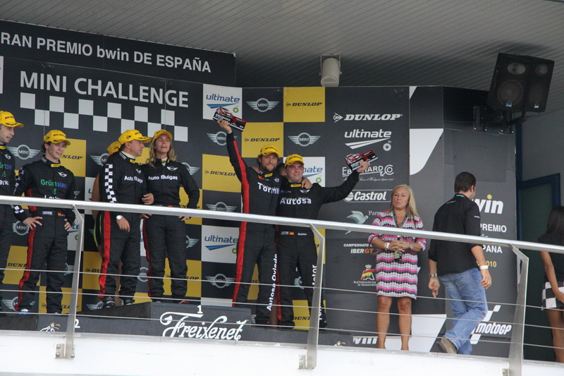 pasaría de la séptima a la sexta posición. En ese momento entraba en carrera Oscar Palacio a 4 décimas del coche de Pablo Amoros. Una tras otra pasaban las vueltas y los intentos de adelantamiento mientras recortaban distancia los perseguidores hasta que finalmente se formo un pelotón con todos ellos. La presión de los vehículos hasta el momento mas retrasados hizo que hubiese varios adelantamientos y toques entre ellos. A 3 vueltas del final el MINI de Autosa-Tormes Competicion logro situarse en quinta posición y así seria hasta la línea de meta. Una penalización de los comisarios por un incidente con otro competidor provocó la caida en la clasificación general del 5º al 11º puesto. En el campeonato MINI Challenge 2010, Autosa-Tormes C O M P E T I C I Ó N cierra su primera participación con un 8º lugar.
